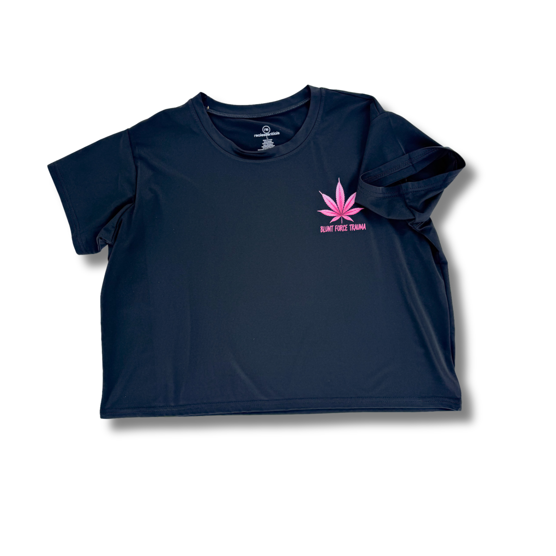 This crop tee brings that chill energy with a bold pop of our signature hot pink leaf on the front for the Canna-Queens who keep it cute while they keep it lit.